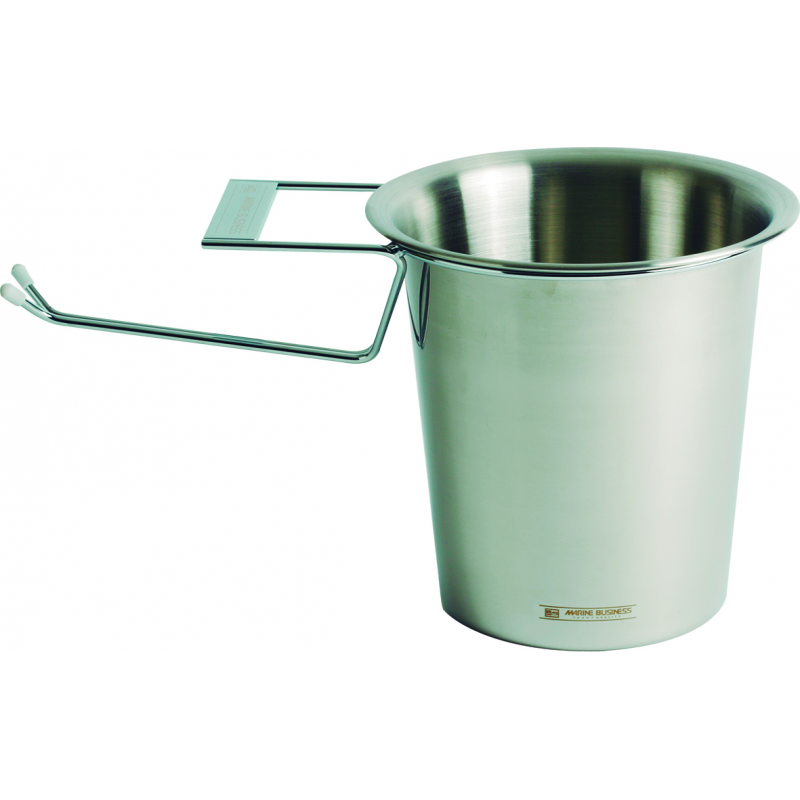 Porta bottiglie termico in acciaio inox. Si può appendere alla tavola, lasciando un maggiore spazio libero ed evitando che la bottiglia cada. Dim. cm. Ø 20 x 20h.