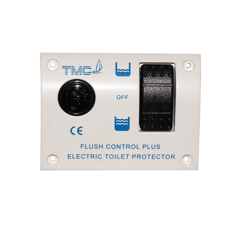 Pannello per azionamento WC elettrico con fusibile di protezione e interruttore a 2 funzioni. 1/2 flusso dura 5 secondi ed eroga 2 lt di acqua, tutto il flusso dura 10 secondi ed eroga 4 lt di acqua. Alimentazione 12 V. Dim. mm. 115x85