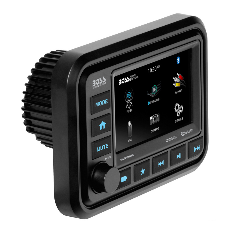 Stereo da cruscotto di forma rettangolare. Dotata di sinonizzatore AM\FM, bluetooth (4.1) per la riproduzione dei brani contenuti nei vostri smartphone o tablet. Porta USB per la riproduzione dei file musicali mp3 o per caricare i vostri dispositivi. Ingresso Pre-Amp (aux) con connettore Rca. Doppia uscita RCA stereo per amplificatori e uscita SubWoofer. Permette di visualizzare un segnale video analogicoproveniente da una telecamera. Resistente agli spruzzi.