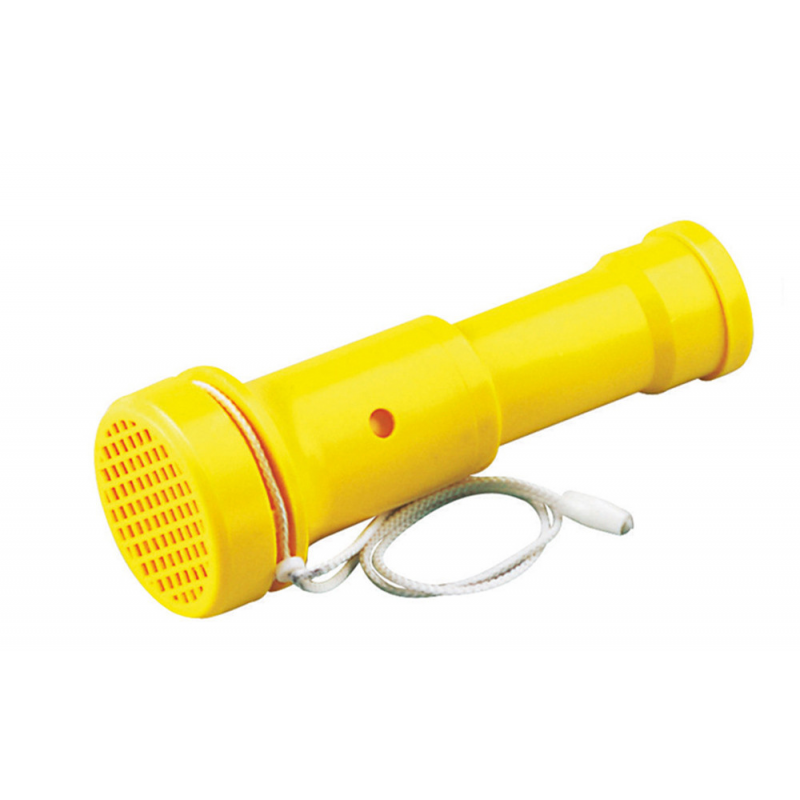 La semplicità di un corno da nebbia e la potenza di una tromba a gas : più di 100 dB senza sforzo. Funziona per vibrazione di una sottile membrana plastica, sostituibile con qualsiasi pellicola plastica sottile. Galleggiante. Dim. Ø mm. 70 x 195, peso 140 grammi