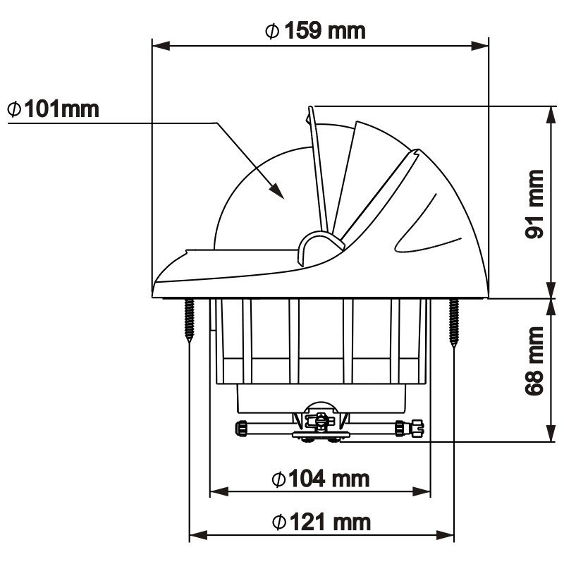Bussola Offshore 115 Ø apparente mm. 101. Rosa con graduazione ogni 5°, per barche a motore da mt 8 a 12, illuminazione di serie a 12-24 V LED. Calotta di protezione retrattile in tre parti scorrevoli. Installazione ad incasso orizzontale o su chiesuola (opzionale). Resistente agli urti ed alle vibrazioni, munita del sistema unico «Vibration Absorber».