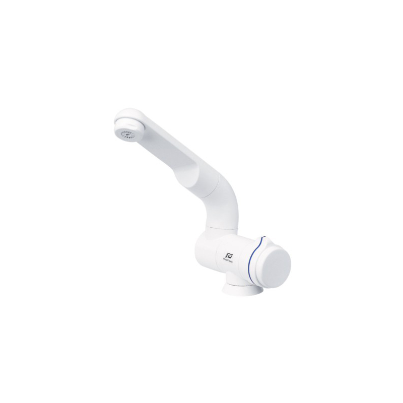 Rubinetto di colore bianco abbattibile. Con ugello a spruzzo per un flusso d'acqua uniforme. Beccuccio girevole. Attacco 3/8". Pressione 2,5 - 3 bar.