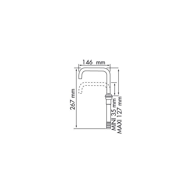 Beccuccio telescopico realizzato in alluminio anodizzato e plastica, girevole a 360° e telescopico. Otturatore regolabile in nylon incluso. Per tubo Ø mm 10 -15