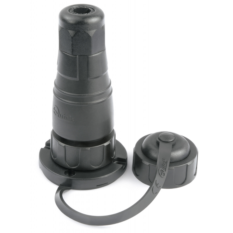 Connettore con contatti dorati Hypertac ad alta portata di corrente ed elevata continuità elettrica. Stagni IP67.
