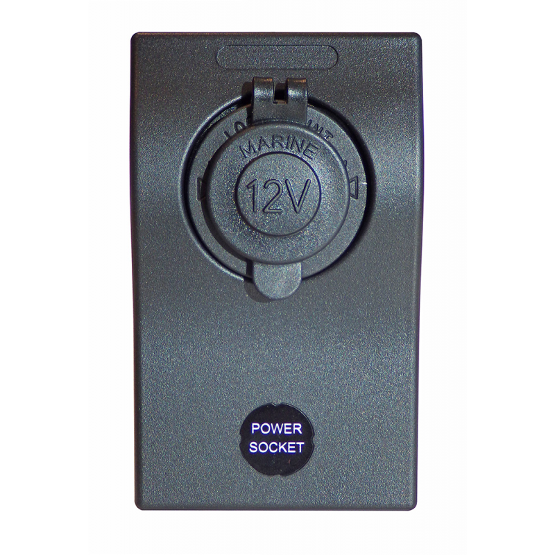 Pannello in plastica con presa accendisigari con cappuccio di protezione. Fissaggio con 4 viti anteriori nascoste da una placca di rifinitura. Magnetotermico di protezione da 15A Max. Profondità presa accendisigari mm 32. Dimensioni pannello mm. 60x100
