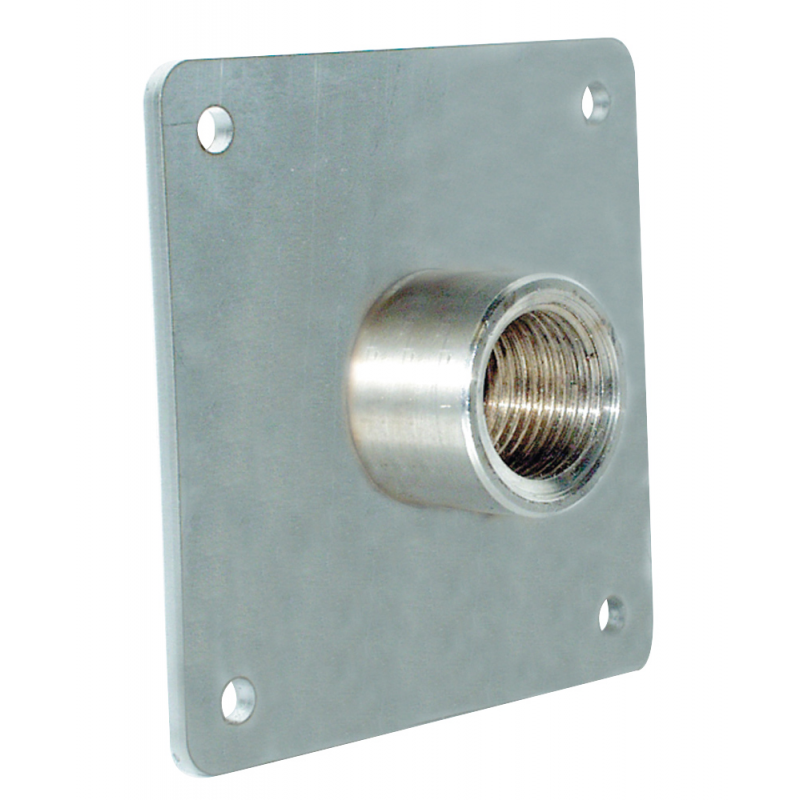 Piastra e manicotto filettato in acciaioinox AISI 316. Ideale per creare con dueportagomma passaparatie per il passaggiodi liquidi e gas tra le varie intercapedini. Dim.piastra mm. 80x80, con 4 fori di fissaggio