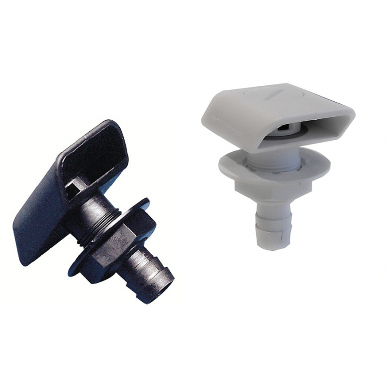 Sfiato in nylon dritto, con retina rompifiamma portagomma Ø mm. 16