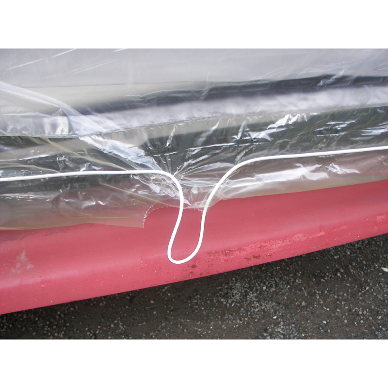 Copertura Nautica Indoor, versione con elastico. La sua particolarità sono i 2 elastici applicati lateralmente su tutta la lunghezza, atti a facilitare ed a ridurre i tempi della messa in opera.Istruzioni di montaggio:1. Srotolare il telo dalla poppa alla prua mantenendosi centrali all'imbarcazione lasciando un esubero di circa 50 cm per parte.2. Applicare 2 fascette distanziate circa 30 cm e tagliare il telo.3. Estrarre gli elastici ed annodarli.4. Aprire il telo sull'imbarcazione.5. Tirare l'elastico da una delle estremità ed annodarlo per mantenerlo in trazione.6. Utilizzare se necessario gli appositi pre tagli con rinforzi per collegare l'elastico perimetrale trasversalmente. Venduta a rotolo