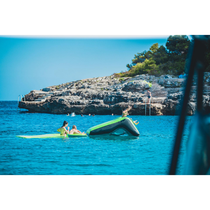 Costruito in PVC ad alta resistenza con copertura in Nylon. Può essereutilizzato come scivolo o comodo divano, ideale per rilassarsi con i suoi 2portabicchieri integrati e le 8 maniglie in nylon imbottite. Dimensioni sgonfio cm 210x140
