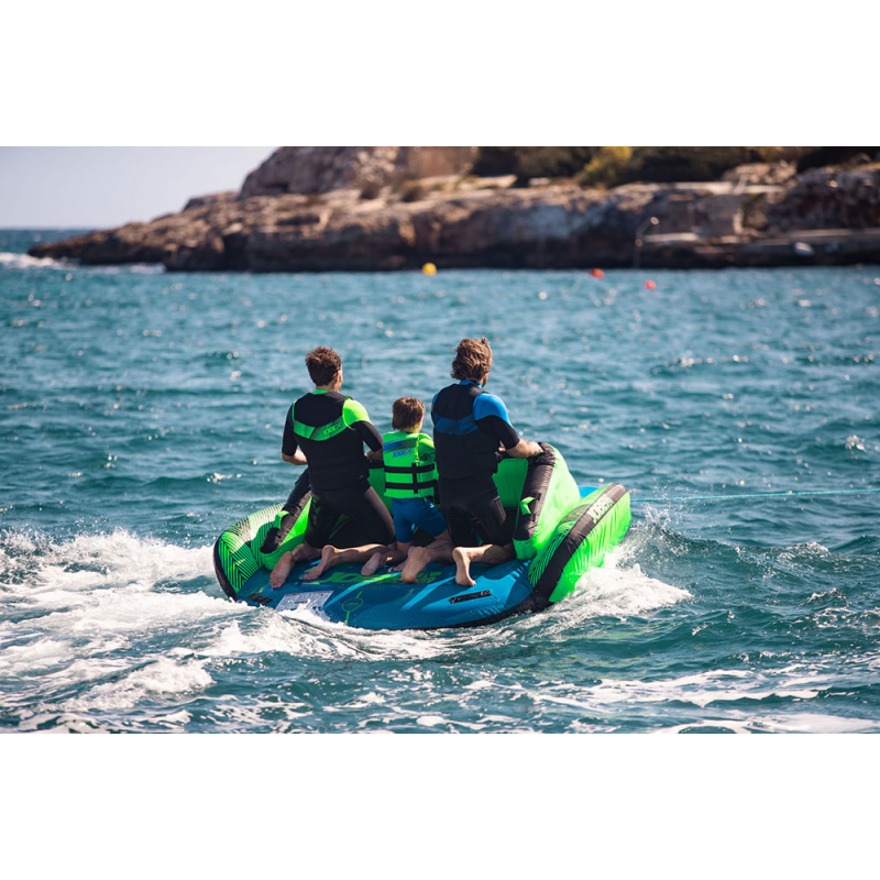 Costruito in PVC ad alta resistenza con copertura totale in Nylon con protezioni in morbido neoprene, dotato di 16 maniglie in nylon con protezione interna in eva soft-grip e protezione inferiore in neoprene, 4 camere d'aria, nr. 2 attacchi rinforzati con fettuccia di nylon che danno la possibilità di poterlo trainare da entrambi i lati. Non adatto ad uso professionale. Dimensioni sgonfio cm 246x190x75