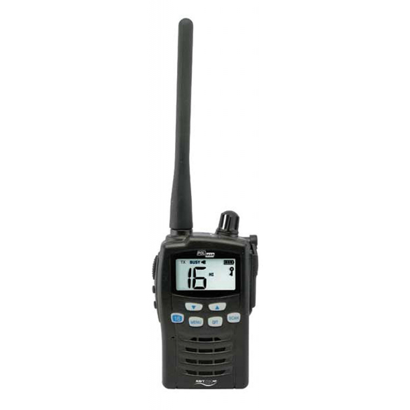 Con trasmettitore da 6 watt di potenza RF (riducibili a 1 watt), funzionante su tutti i canali internazionali ammessi. Display digitale LCD retroilluminato. L'apparato, di costruzione robustissima é resistente alla polvere e all'acqua a livello IP54. Canale di chiamata d'emergenza attuabile con un solo tasto dedicato (16), possibilità di blocco dei tasti, regolazione dello squelch in 8 livelli differenti, disponibile l'impostazione automatica dello squelch oppure la possibilità di mantenerlo sempre aperto o di “Monitor” per l'aprire momentaneamente lo squelch. Dual-Tri watch per il monitoraggio contemporaneo di due/tre canali. Dotato di funzione Key Beep che permette di ottenere un segnale acustico di conferma ogni volta che viene premuto un pulsante dell'apparato e “Power save” che consente di risparmiare la carica del pacco batterie in maniera tale da aumentarne l'autonomia. Caratteristiche tecniche: Frequenza 156.025-162.000 MHz, modulazione FM, Impedenza di antenna 50 ohm. Fornito completo di: batteria agli ioni di litio da 7,4V - 1000mAh, carica batterie da tavolo 220 V antenna in gomma flessibile e removibile, custodia. Temperatura di funzionamento: -15°C +55°C. Dim. mm. 112 x 61 x 31. Peso 235 gr.