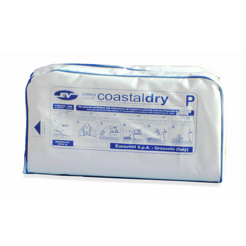 Zattera Compact-drymezzo di salvataggio per la navigazione entro le 12 miglia dalla costa, omologato in conformità a quanto indicato nel decreto dirigenziale emanato dal Comandante Generale del corpo delle capitanerie di porto, in data 2 Marzo 2009, secondo quanto previsto dall'art 54 del decreto ministeriale n° 165 del 28 Luglio 2008.Prima revisione dopo 3 anni, successive ogni 2 anni. Dim. cm. 73x38x26h, peso kg. 41
